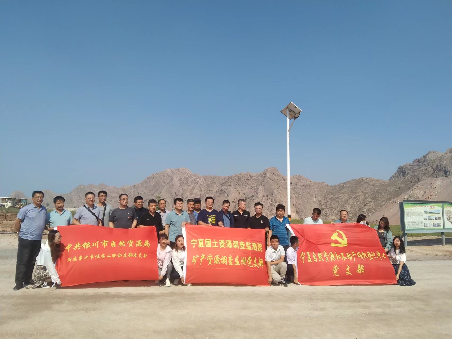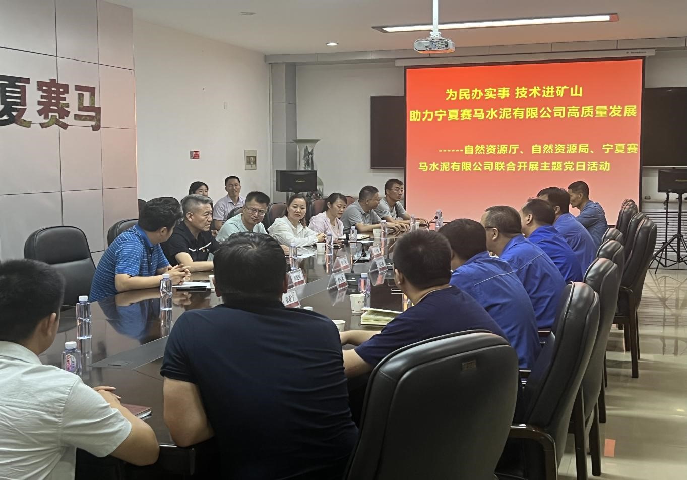 在中国共产党建党101周年来临之际,2022年6月29日自治区国土资源调查监测院矿产资源调查监测党支部联合自治区自然资源和不动产确权登记中心支部、银川市自然资源局所属事业单位第二联合党支部、宁夏赛马水泥有限公司矿山分厂党支部,共同开展了联合“支部主题党日”活动。