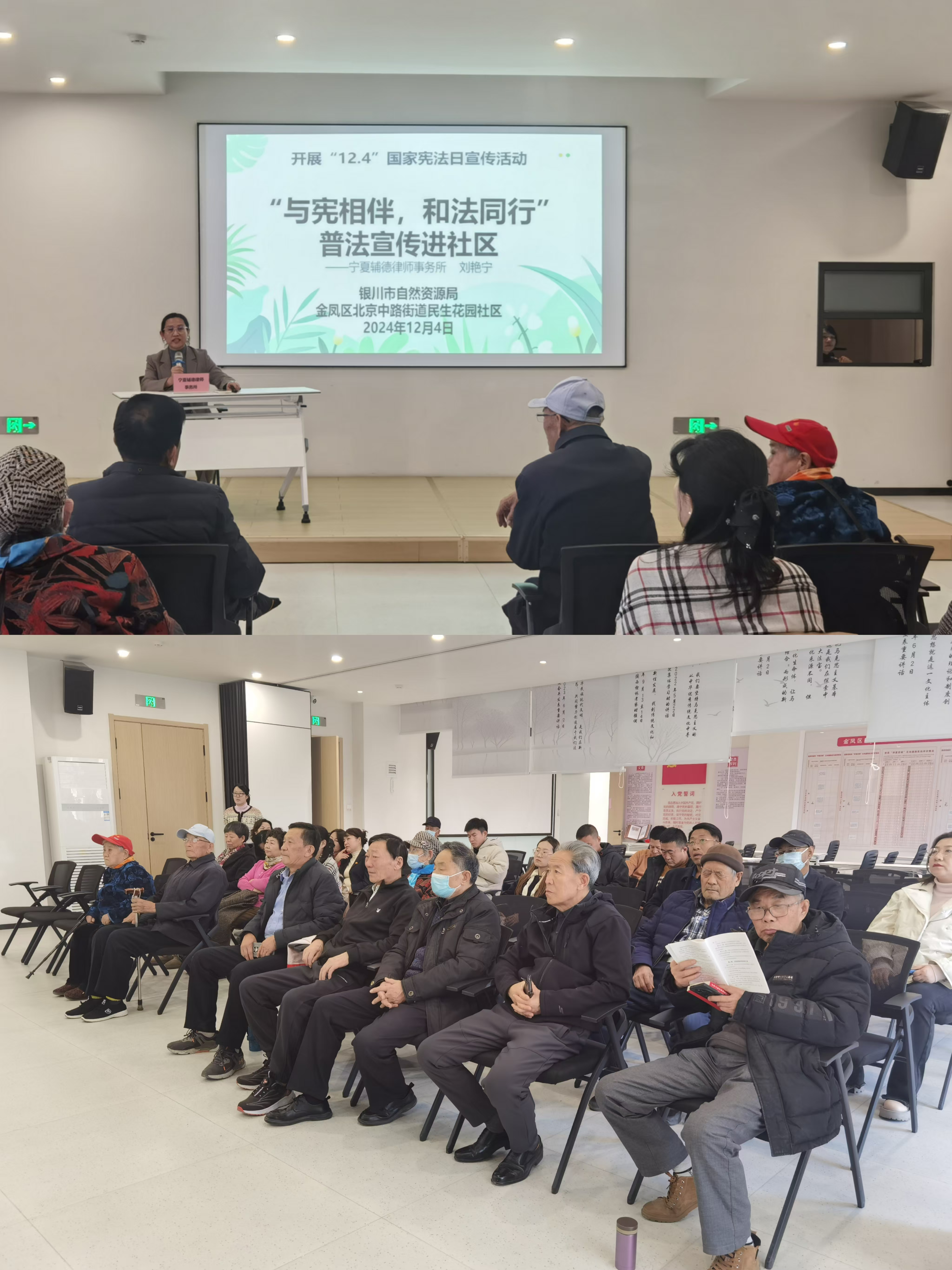 以案释法学宪法。邀请律师深入金凤区民生花园社区,结合“12·4”宣传讲解宪法中关于公民的基本权利和义务的规定,以及如何行使公民权利、履行义务,并结合社区居民的法治需求和关注的热点问题,以案释法作了详细具体的讲解。同时,针对居民群众对自然资源领域法律法规的疑问困惑,相关科室负责人现场答疑解惑,进一步提高居民法治意识、增强法治观念。