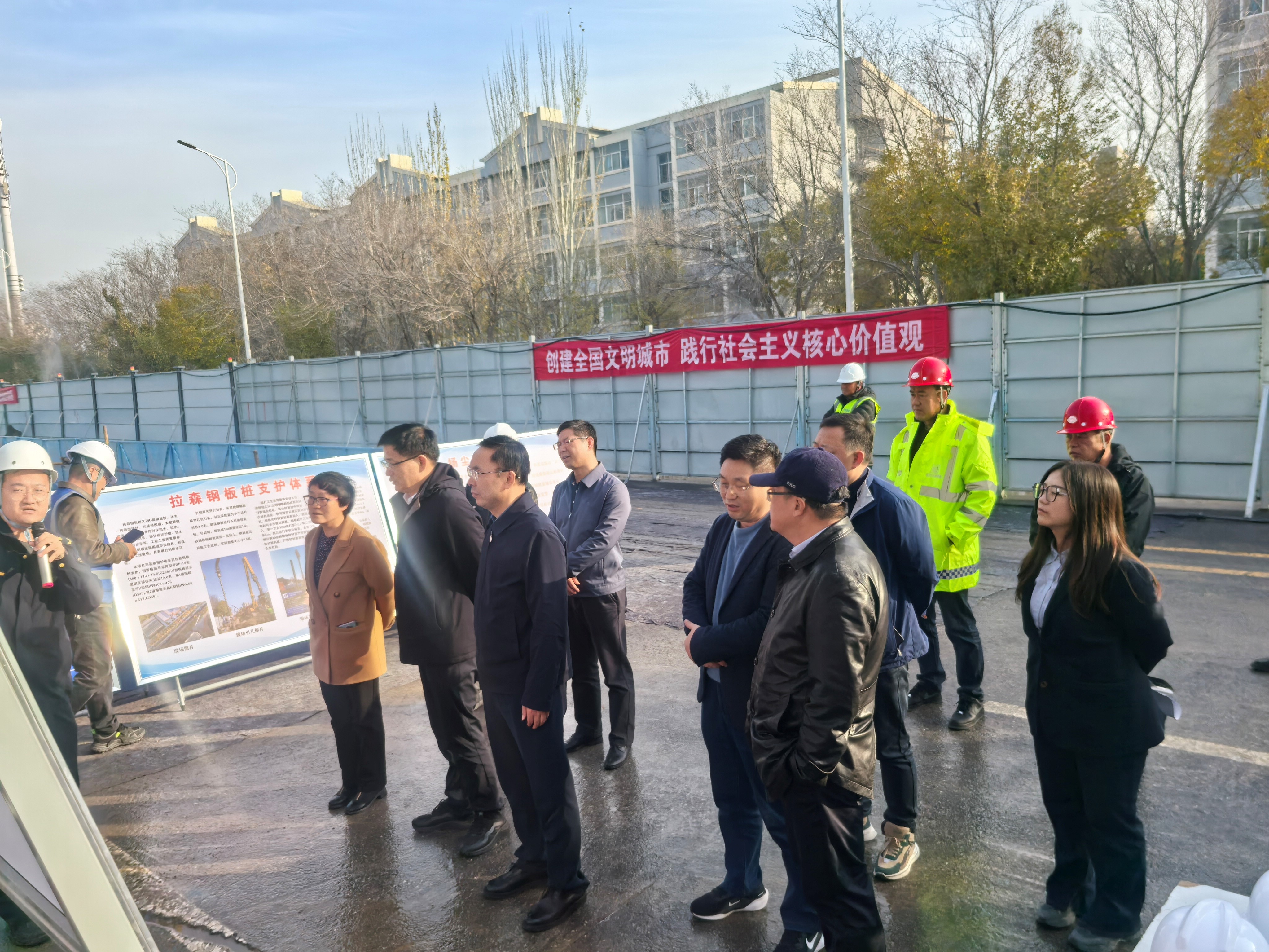 调研组一行首先来到宝湖路地下综合管廊,参观了管廊综合仓、缆线仓及主控中心,对各类管线在廊内布局整齐、安全高效运行给出好评。随后,调研组来到西夏区中北部排水防涝能力提升工程项目现场,对我市近年来通过实施“主动脉+毛细血管”策略,持续完善区域雨水主管网、改造易涝点、系统提升区域防洪排涝能力的做法给予肯定。