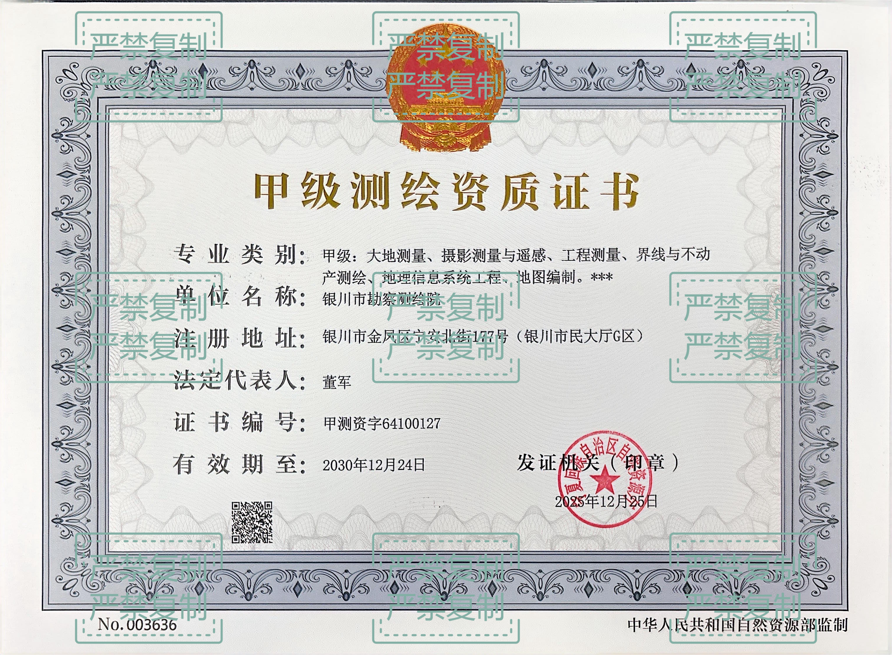 银川市勘察测绘院获批大地测量专业甲级测绘资质