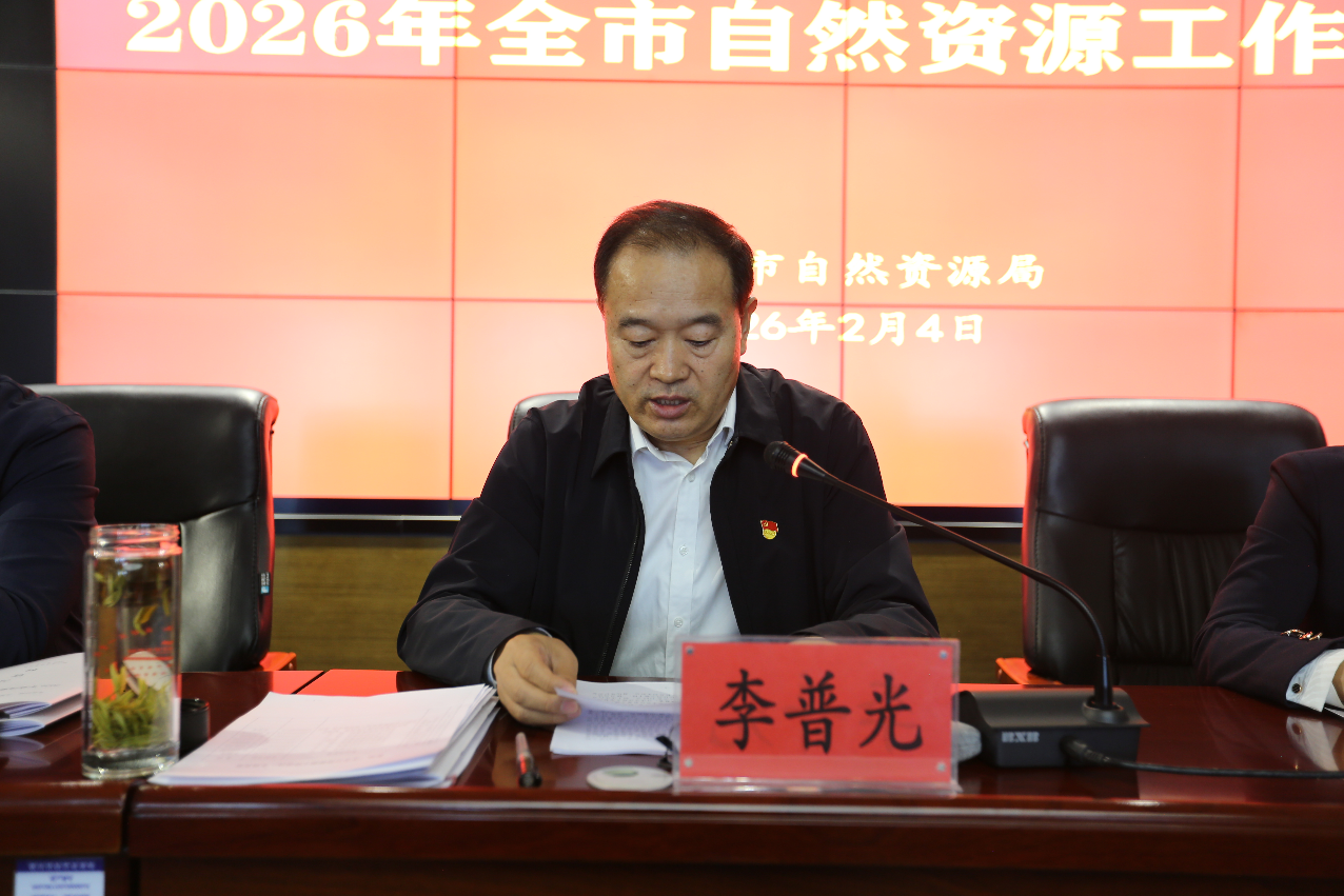 2月4日,2026年全市自然资源工作会议召开。会议以习近平新时代中国特色社会主义思想为指导,深入贯彻党的二十届四中全会、中央经济工作会议精神,认真贯彻习近平总书记考察宁夏重要讲话精神,全面落实自治区党委十三届十一次、十二次全会和全国、全区自然资源工作会议决策部署,以及市委十五届十四次、十五次全会和市“两会”部署要求,总结2025年工作,部署2026年任务。局党组书记、局长李普光出席会议并讲话,局领导班子成员、调研员,各县(市)区自然资源局、经开区管委会国土规划局、苏银产业园管委会国土规划建设部负责同志,机关全体干部、局属各事业单位班子成员参加会议。