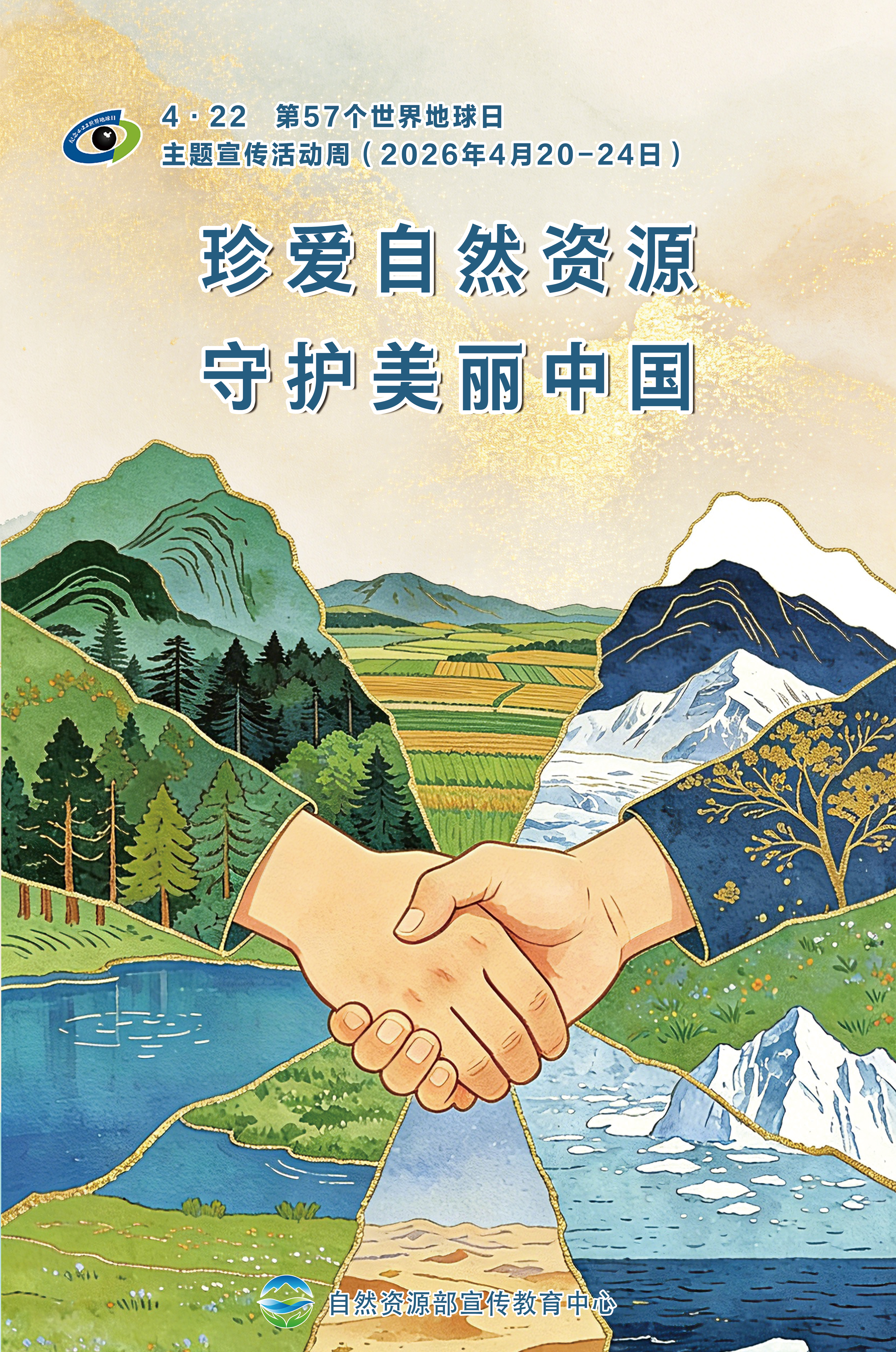 2026年4月22日是第57个世界地球日,活动主题是“珍爱自然资源 守护美丽中国”。自然资源部宣传教育中心设计制作了主题海报,欢迎下载使用。