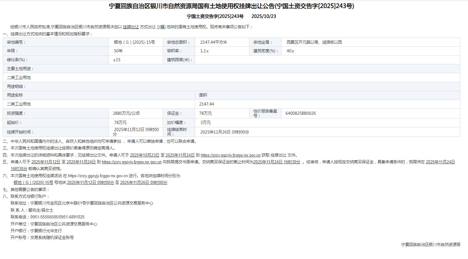 银地(G)[2025]-15号