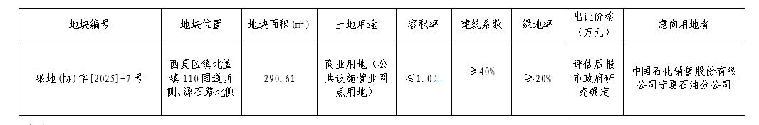 一、上述宗地有效公告期为5日(2025年7月8日至2025年7月12日),公告期内如有意见及建议或意向用地者,可提交书面材料到银川市自然资源局,书面内容必须含利害人真实姓名、有效联系方式、客观的反对理由或意向用地申请。公告期满未收到有效意见及建议、意向者用地申请的,将视为无异议、无其他意向用地者,届时银川市自然资源局依法依规将按程序完善后续用地手续。