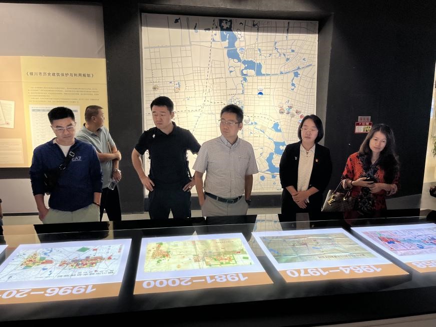 会后,调研组一行来到银川市规划展示馆参观。郭瑾馆长组织讲解员向来宾们详细介绍了关于宁夏历史的多元风貌和银川城市的发展演变的介绍,体验了羊皮筏子VR设施,还针对银川市城市总体规划、国土空间总体规划以及黄河银川段两岸生态修复规划等银川市重点项目建设情况进行了深入交流。最后在数字沙盘厅,来宾们观看了集声光电于一体的数字影片,对银川“塞上湖城”的城市景观和发展有了更直观的认识,对现代科技展现出的银川新风貌赞叹不已。