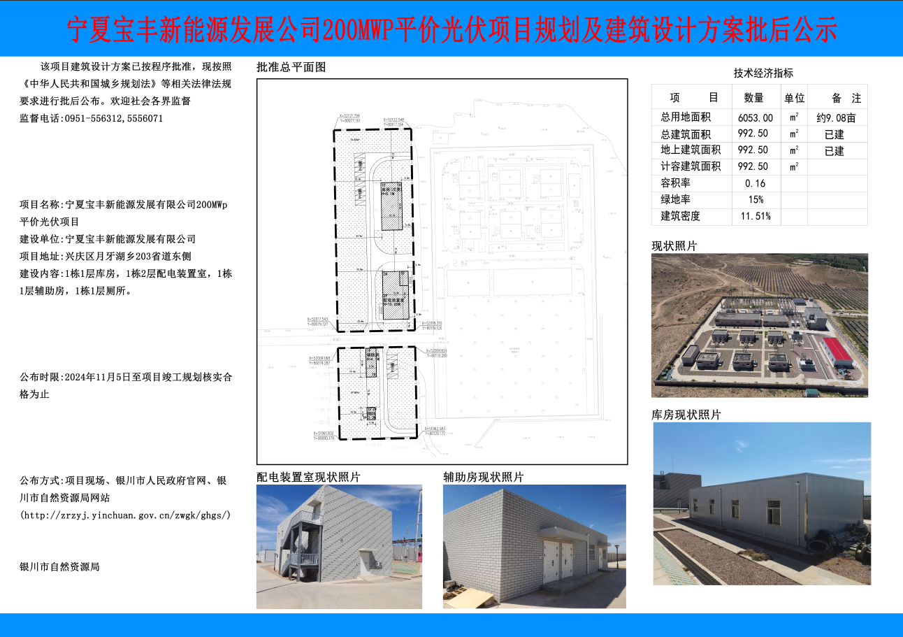 宁夏宝丰新能源发展公司200MWP平价光伏项目规划及建筑设计方案批后公示