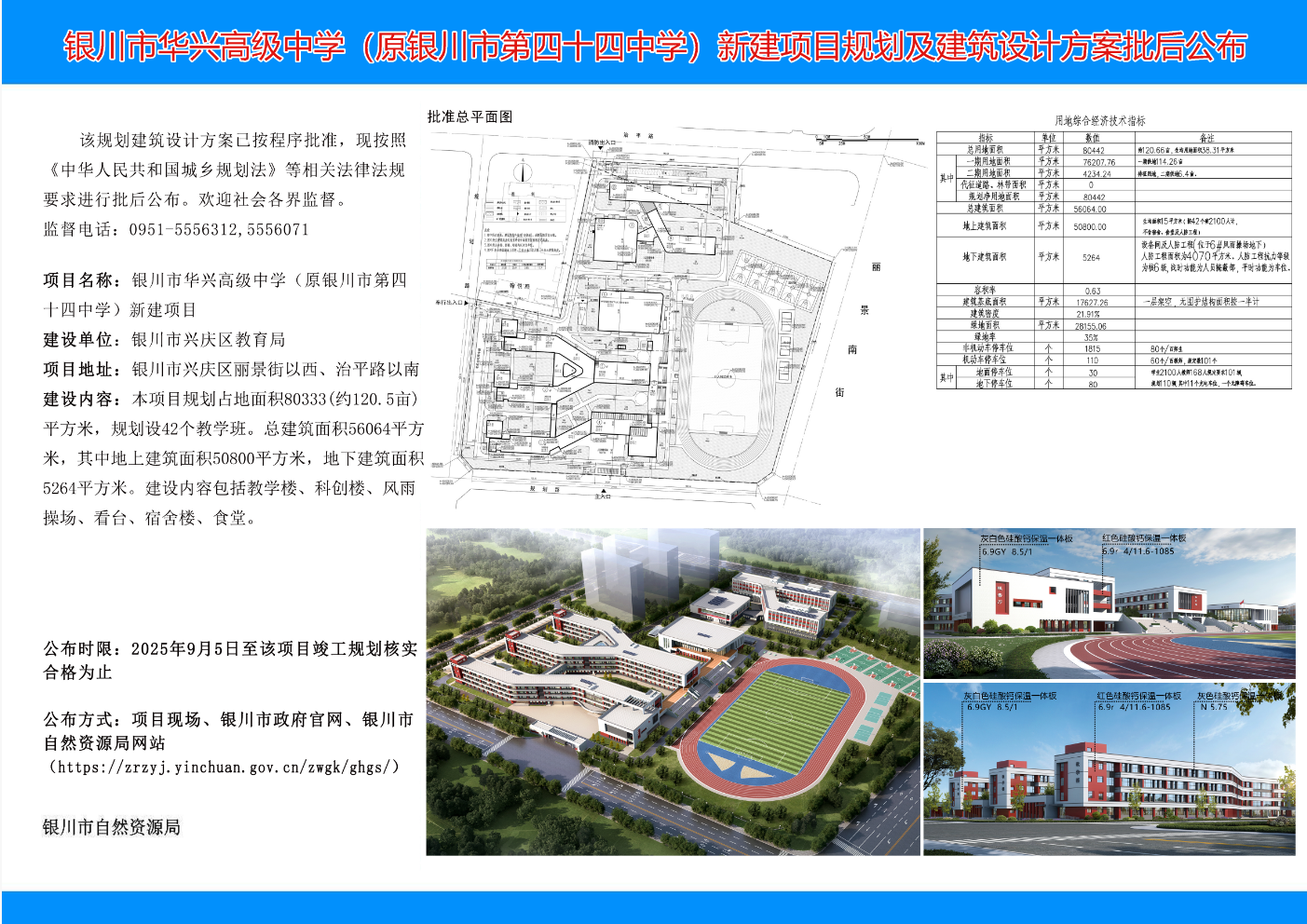银川市华兴高级中学(原银川市第四十四中学)新建项目规划及建筑设计方案批后公布