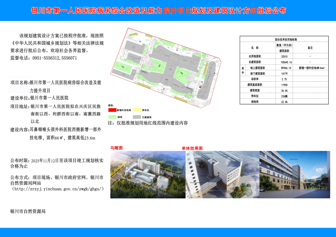 银川市第一人民医院病房综合改造及能力提升项目规划及建筑设计方案批后公布
