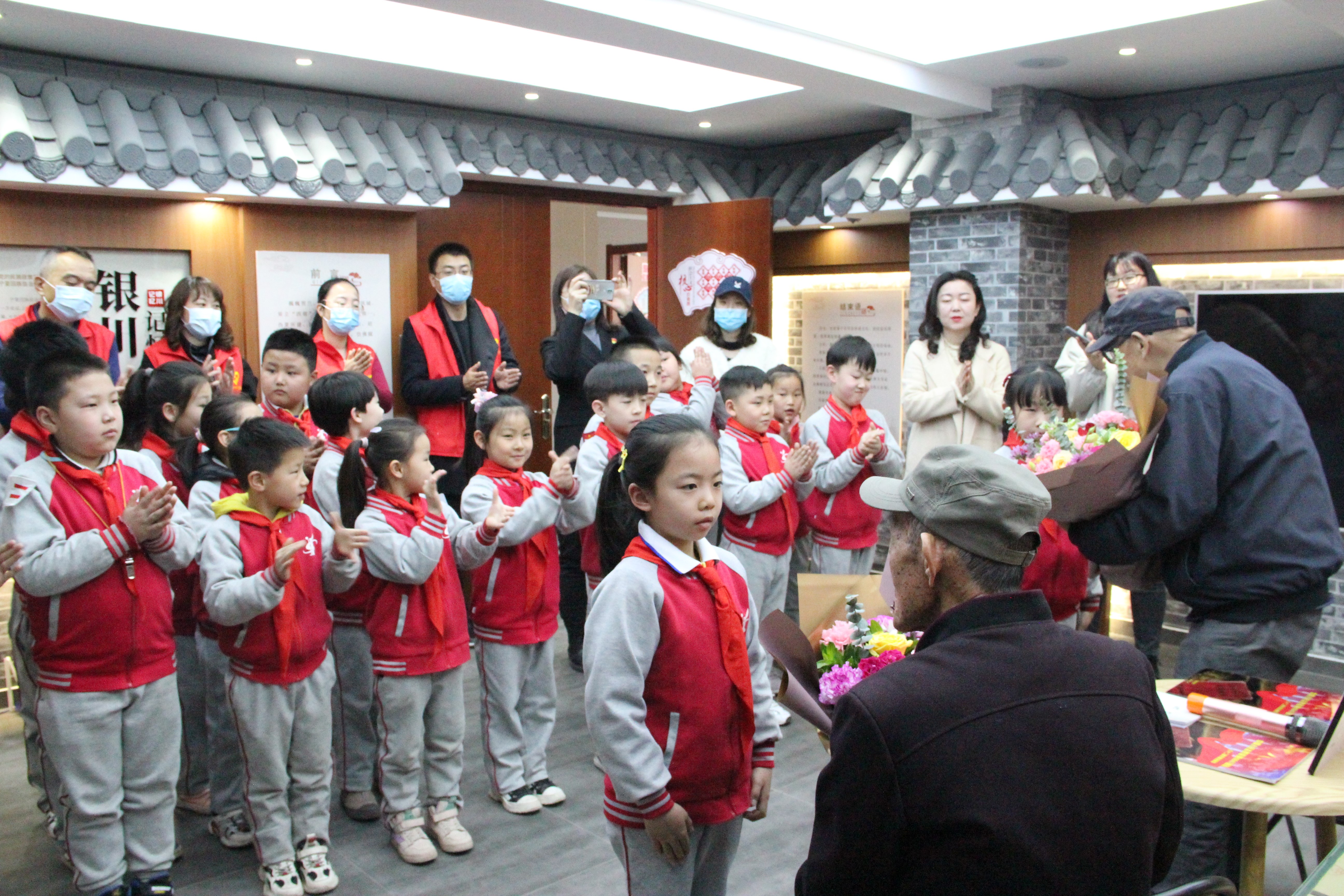 3月3日,与银川市实验小学在前进街西塔社区联合开展学雷锋志愿活动,邀请辖区老红军李洪生为小学生、志愿者讲述革命故事,弘扬雷锋精神。志愿者向同学们宣传2020年银川市新冠疫情防控志愿者先进典型事迹,号召同学们向雷锋同志学习、向志愿者学习,积极参与各类志愿服务,弘扬不怕苦、不怕累的精神。最后,志愿者给同学们送出展馆宣传册、研学手册及笔记本、笔袋等学习用品,鼓励同学们努力学习科学文化知识,长大后为建设美丽银川贡献自己的力量。