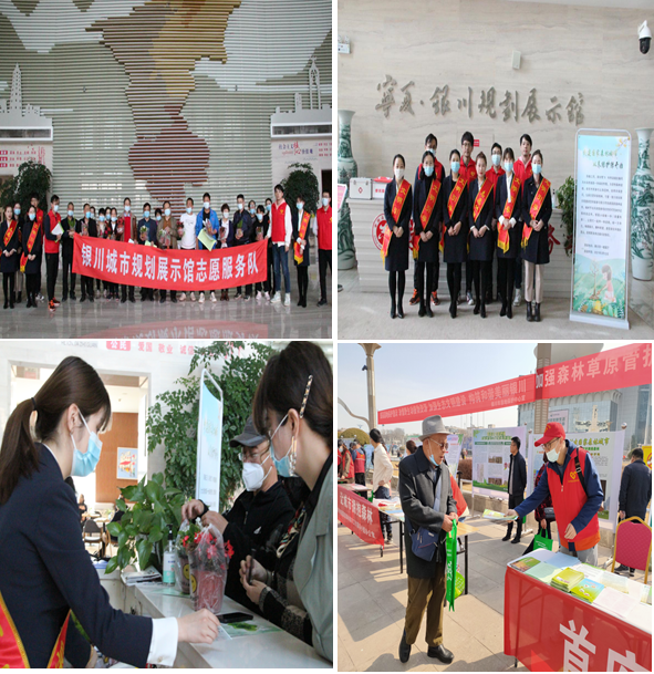 3月8日至3月12日,组织志愿者开展“植绿护绿共创森林城市,爱绿兴绿共建美丽银川”志愿服务周活动,通过细心筹备、精心策划,在展馆序厅、尾厅摆放宣传展板、海报,设置以创建国家森林城市为主题的临展区。讲解员将创建国家森林城市内容纳入日常讲解接待,通过每天4场整点讲解,向市民宣传讲解银川市创建国家森林城市实施方案等有关内容,并向市民发放银川市创建国家森林城市倡议书、中华人民共和国森林法、森林草原防火、野生动物保护法等相关法律法规宣传资料。